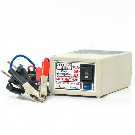 1.1. Мини пускозарядное (предпусковое) устройство (ПЗУ) «АИДА-20s» представляет собой импульсное ПЗУ нового поколения и служит для циклического импульсного заряда в автоматическом режиме 12В необслуживаемых и обслуживаемых аккумуляторных батарей (АКБ) емкостью от 32 до 250 А•час током 5, 10 или 20А, для десульфатации засульфатированных АКБ, для поддержания АКБ в заряженном состоянии и запуска двигателей в холодное время года, а также для хранения АКБ в межэксплуатационный период.