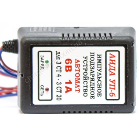 Аида УП-6 - это компактное, импульсное зарядное устройство для аккумуляторов 6В, используется для заряда аккумуляторов для детских электромобилей, лодок, эхолотов и мотоциклов напряжением 6В и емкостью 4-20Ач.