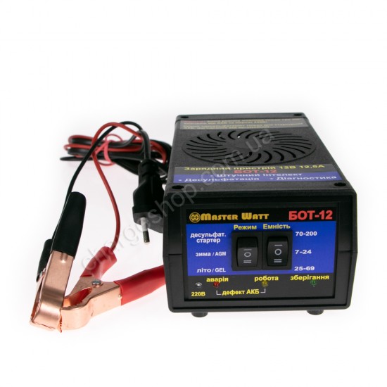 Зарядное устройство “БОТ-12” предназначено для заряда всех типов 12-вольтовых свинцово-кислотных аккумуляторных батарей (АКБ),: